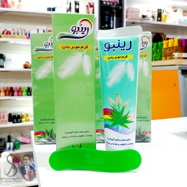کرم موبر بدن رینبو دارای فرمولاسیون منحصر به فردی است به نحوی که موهای زائد بدن را در عرض 5 دقیقه از بین میبرد. این کرم حاوی مواد خاصی میباشد که بعد از چند بار استفاده از آن موهای بدن به تدریج نازک و ظریف میشوند و رشد آنها به تعویق می افتد.